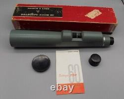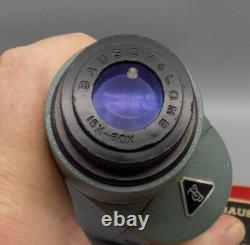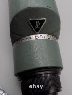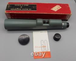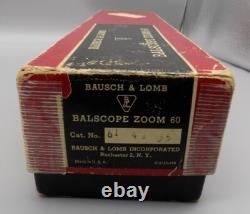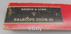 Bausch & Lomb Balscope Zoom 60 spotting scope or small telescope. This scope has tow adjusting wheels. On is for fine focus and the other is for setting the zoom magnification which is between 15 and 60. Also included with this is the original box and the original owners manual.