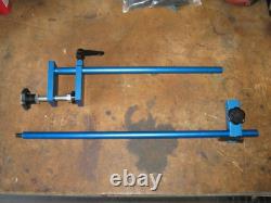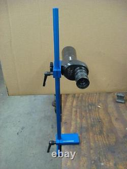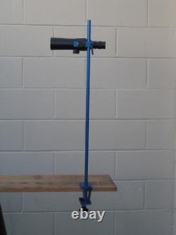 Bench mount spotting scope stand with extension rod. Fully adjustable for bench thickness. Scope Slides up and down 34.