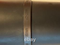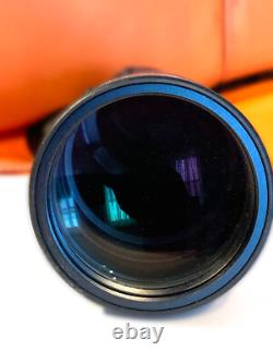 The 80mm objective lens diameter paired with a maximum magnification of 60x offers a broad and detailed view of your target, whether it's a far-off game or a challenging target. Crafted for durability and performance, this spotting scope boasts ED Prime Glass and Rainguard HD, providing superior brightness and protection against the elements. The robust angled body is Waterproof and Fogproof, ensuring visibility and functionality in all conditions. The scope is in very good condition except for a damaged rubber coating in one place shown in the photo.
