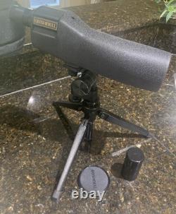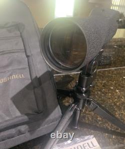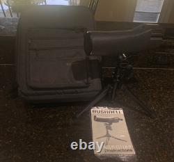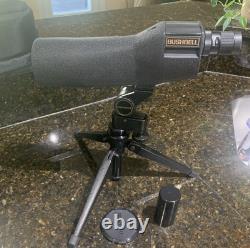 The Bushnell Spacemaster 15-45x60mm Spotting Scope is a high-quality optic designed for hunting applications. With a maximum magnification of 45x and a 60mm objective lens diameter, this spotting scope provides clear and detailed views of distant objects. Made in Japan, this Bushnell product ensures top-notch craftsmanship and durability. The included eyepiece, tripod, and backpack make it convenient to use and transport, making it a versatile and reliable tool for outdoor enthusiasts.