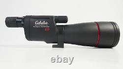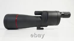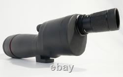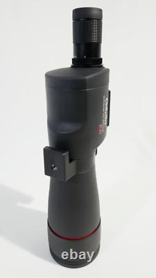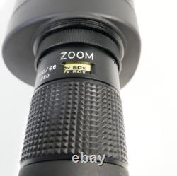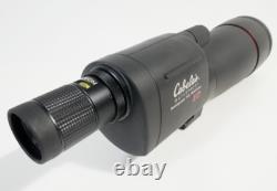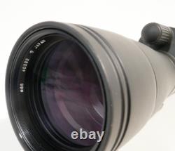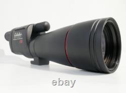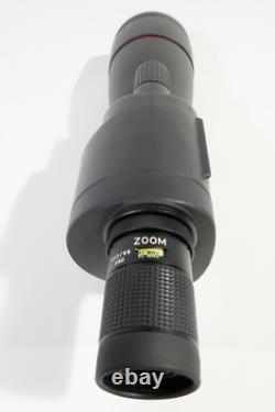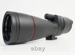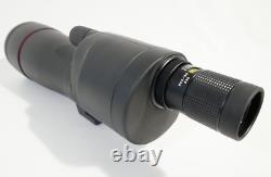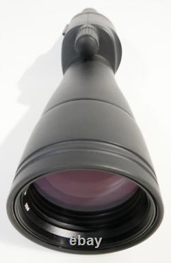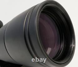 This high-end waterproof ED spotting scope was acquired by NRO from a source in Japan. According to the previous owner, the scope was entirely made in Japan, and this unit was a never-used show model from a Japanese optics store. The close to pristine condition of the scope and carry case supports that characterization i. The scope might have been handled by store customers but never saw outdoor use. With its stamped-aluminum body, this is a relatively heavy scope (about 3 lb with zoom eyepiece attached).