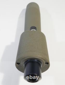 Durable stamped-aluminum body with tough baked-on enamel finish. Objective made of premium BK optical glass. Eyepiece provides 25X magnification with good eye relief (NRO estimates 16mm). This scope is also compatible with all screw-in, fixed focal length eyepieces made for older Vixen field scopes, which share the same M28.