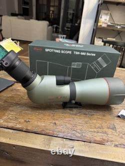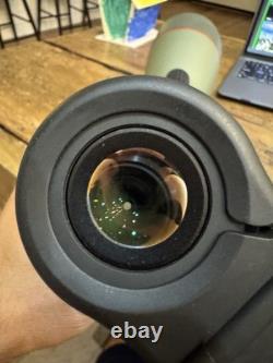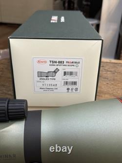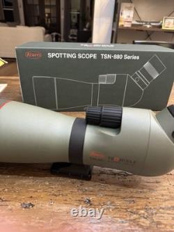 The Mint Condition Kowa TSN-883 Prominar Spotting Scope with a 25-60x wide zoom eyepiece is a top-of-the-line optic designed for hunting and birding enthusiasts. Made in Japan, this full-size, angled spotting scope features a fully multi-coated 88mm objective lens, providing clear and bright images. With features such as waterproof, dustproof, and fogproof capabilities, as well as long eye relief and a wide-field lens, this Kowa spotting scope offers versatile and high-quality viewing experiences in various outdoor environments. Perfect for avid outdoor observers looking for a reliable and superior spotting scope for their adventures.