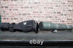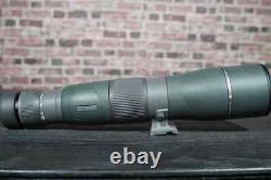 Up for sale is a Vortex RAZOR HD 22-48X65 STRAIGHT Spotting Scope w/ PADDED STORAGE CASE. Some superficial markings on the body, but glass is flawless.